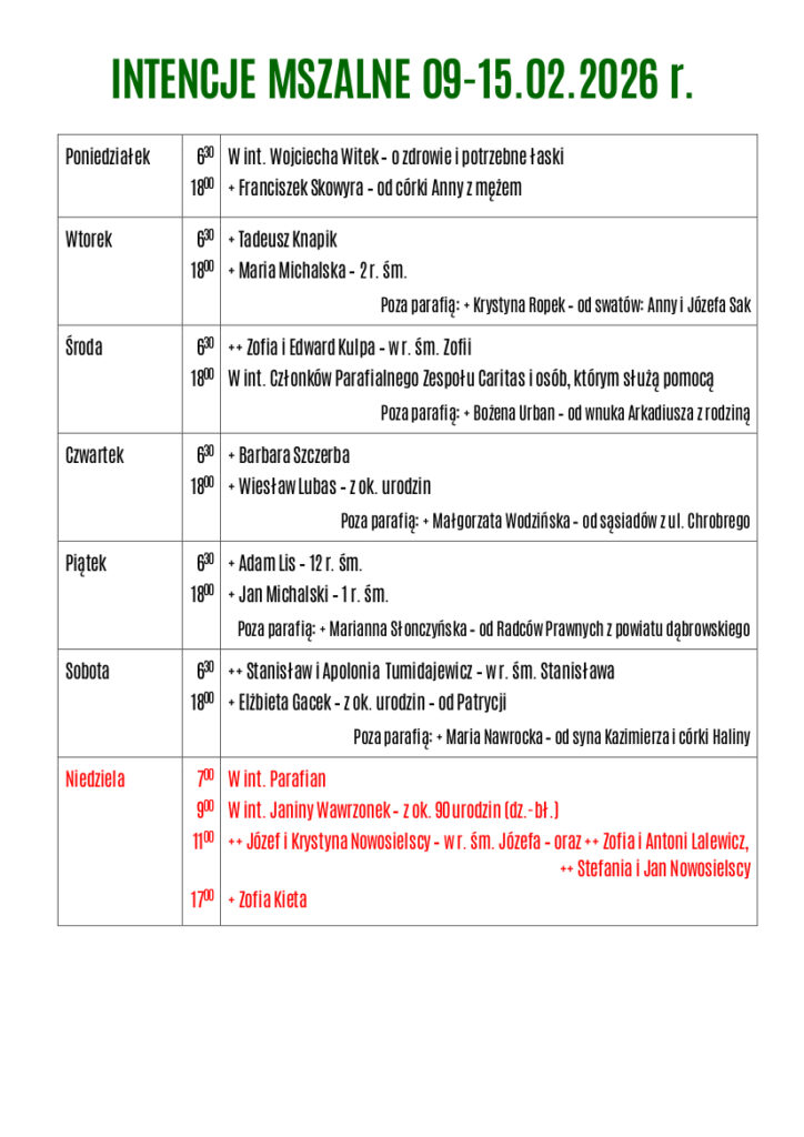 Za półtora tygodnia, w czwartek po Środzie Popielcowej rozpoczniemy parafialne rekolekcje wielkopostne, które poprowadzi Ks. mgr lic. Piotr Madej, Notariusz Kurii Diecezjalnej w Tarnowie. Zadbajmy, aby mieć czas na spotkania rekolekcyjne rano lub wieczorem.