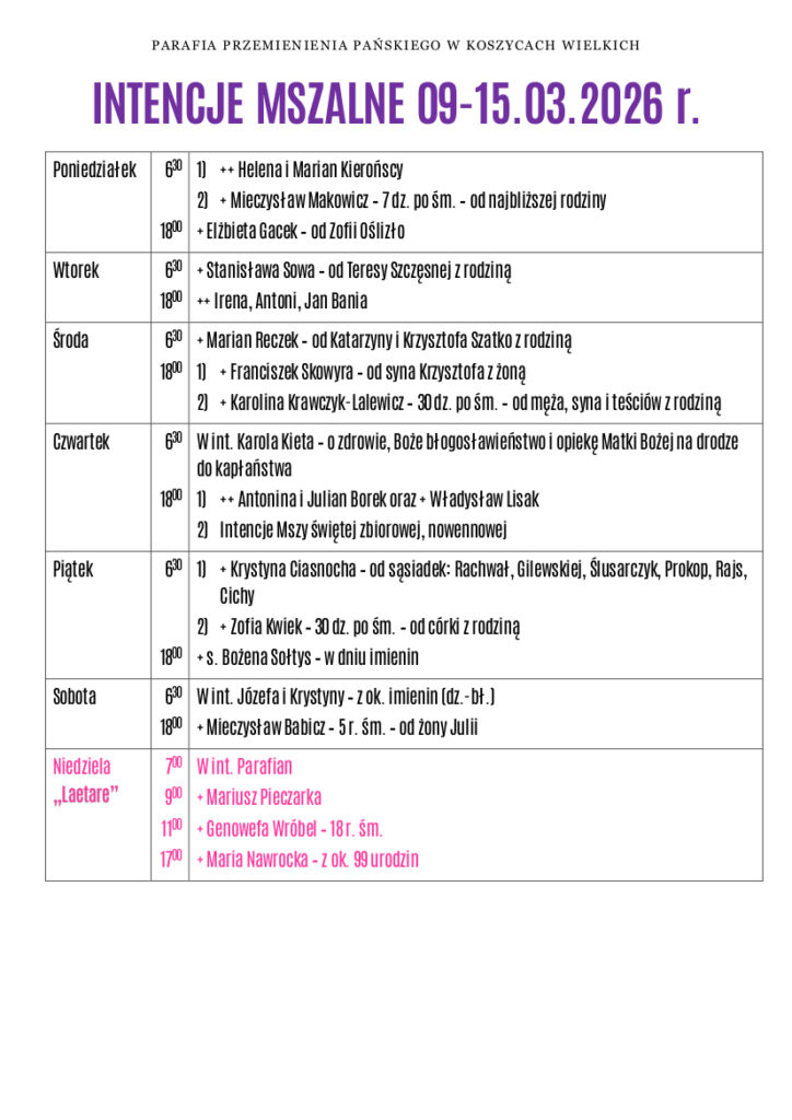 OGŁOSZENIA DUSZPASTERSKIE